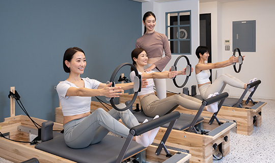 リフォーマーマシンは「難しそう」「きつそう」とイメージしてしまいそうですが、実際に使っていただくと、そのサポート力やストレッチ感に驚かれるのではないかと思います。
