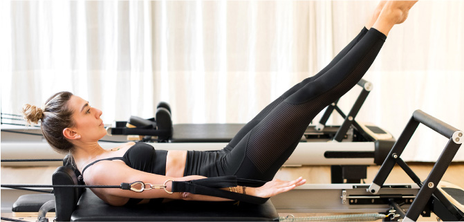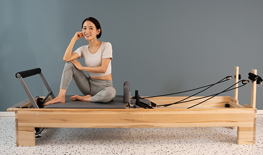 元々はリハビリテーションの目的で使用されていたリフォーマーマシンですが、骨の歪みや体のクセによって崩れやすいフォームをアシストするため、正しい動作で適切なピラティストレーニングを可能とします。