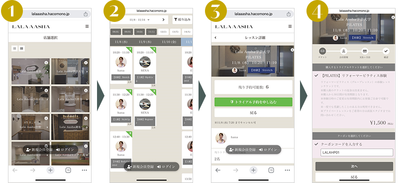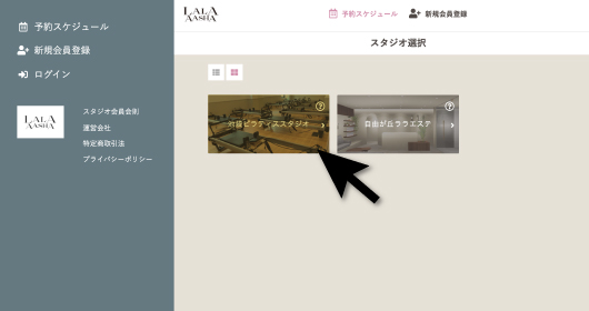 受講されたいスタジオ・コースを選択いただいた後、事前予約のご登録をお願い致します。